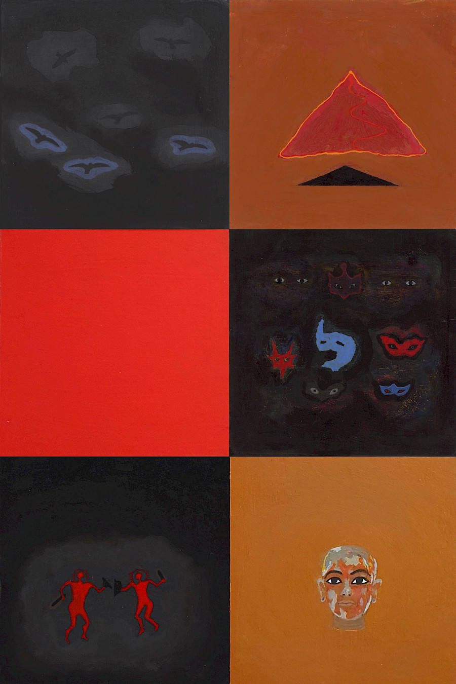 Daher sind nur von sechs Werkgruppen (gegenüber bisher über 30 entstandenen) einzelne Arbeiten ausgestellt. Das Besondere: das in der Ausstellung konzipierte Charakteristikum ist die Dualität der beiden malerischen Konzepte der konkreten und der narrativen Malerei.