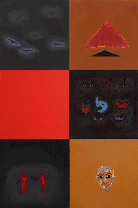Daher sind nur von sechs Werkgruppen (gegenüber bisher über 30 entstandenen) einzelne Arbeiten ausgestellt. Das Besondere: das in der Ausstellung konzipierte Charakteristikum ist die Dualität der beiden malerischen Konzepte der konkreten und der narrativen Malerei.
