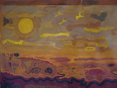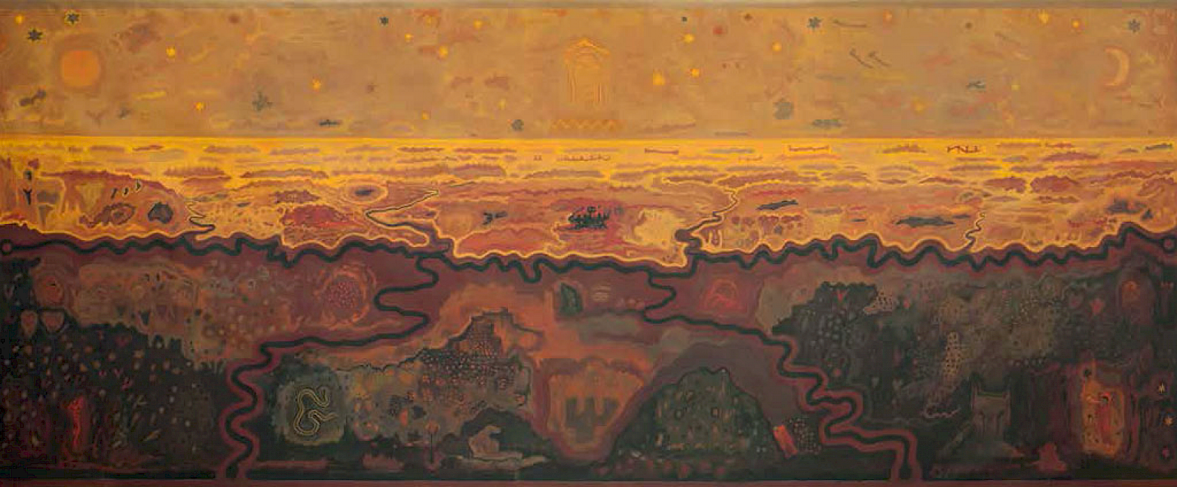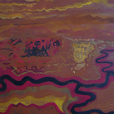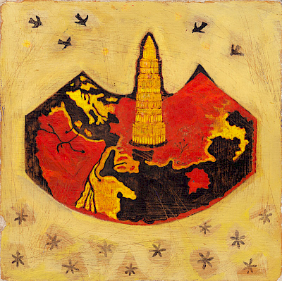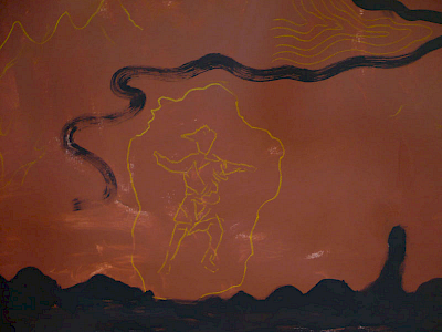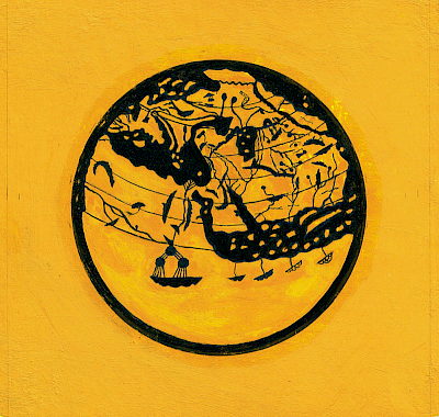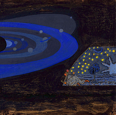 Neben dem großen Bild sind kleinformatige „Weltbilder“ entstanden, die Weltkarten aus der Antike, der frühen arabischen Kultur und dem Mittelalter zitieren. Eine Arbeit, die dem französischen Astronomen Flammarion gewidmet ist.