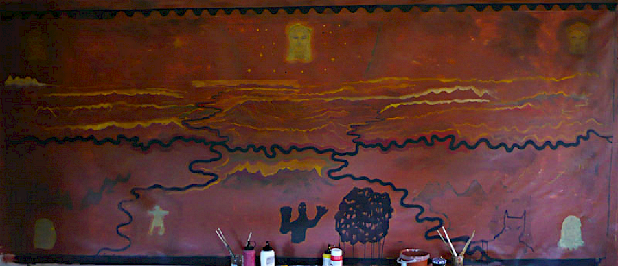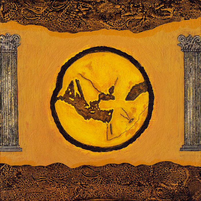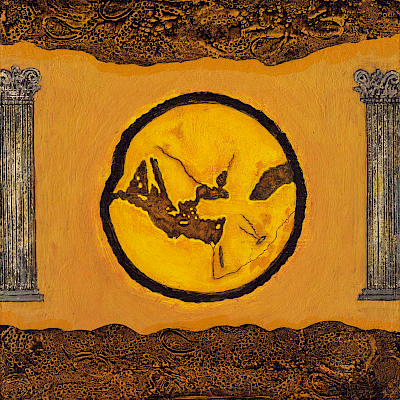 Das alte welt-bild entstand in dreimonatiger Arbeit im Jahr 2012, in meinem Atelier in Villes-sur-Auzon. Frühere Arbeiten, vor allem die Ikonostase und le bien et le mal, sind mit dem alten welt-bild thematisch und konzeptuell verwandt: Der Künstler als Augenzeuge der Bilder anderer, alter Kulturen, der Antike und des Mittelalters. Die Teilung in unterschiedliche Sphären verwandelt sich in ein zunehmendes Miteinander. Eine große, mythologische Landschaft.