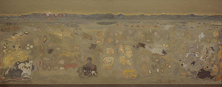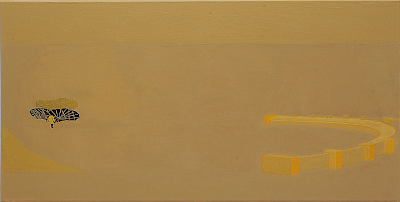 Ein Bauwerk, ein Grundriß, ein Bild. Vitrinen in einem Museum, eine Wand, eine Blüte aus dem Himalaya... Es klingt vielleicht übertrieben, als ich Berlin war, sagte ich immer wieder: hier gibt es alles und davon viel. Geschichte, Architektur, Kunstwerke, Natur. Ich suche Orte vor Ort auf, finde aber auch Texte und Bilder jener Orte. Es entstehen Arbeiten über Orte und über Bilder von Orten. Drei Interessenspunkte werden auffällig: Siedlungsbauten von Bruno Taut, Landschaftsfragmente vom Marmorpalais am Heiligensee und verstümmelte Skulpturen des Pergamon-Altars, vom einseitigen Kampf unsterblicher Götter gegen sterbliche Giganten. Manchmal begegne ich an Orten auch Geistern: Alexander von Humboldt im Neuen Museum und seinem Spazierstock im Botanischen Garten; Otto Lilienthal auf dem Flughafen Tempelhof, Kasimir Malewitsch an der Rückfront des alten Kulturwerks "Tacheles". Im Schloßpark von Sanssouci berührt mich die Anachronie italienisierender Bauten, daneben ein Foto in einem Bildband vom 2.Mai 1945 in Berlin. In Berlin-Mitte blicke ich in "Clärchens Ballhaus" und in Kreuzberg in ein Schaufenster mit Buddha-Figuren.
