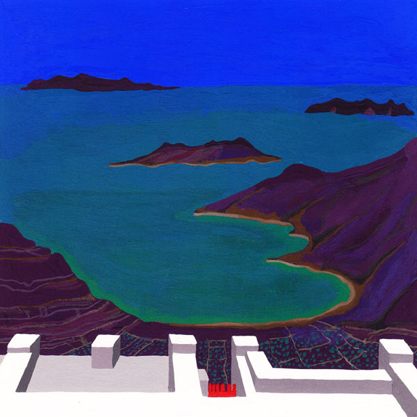 Es war einmal... ist keine Übertreibung, beim Erinnern an meine Reisen auf die Kykladen-Insel Sifnos .Mit gemählich tuckernden Fährschiffen vom Piräus durch die Ägäis. Staunen, Träumen und Schlafen auf dem Oberdeck. Auf der Insel selbst zu Fuß durch die Berge bis zum Kloster Panagia to vounou, die Allerheilige vom Berge. Eines der über 240 Klöster der Insel, mit einer intakten Kirche und einigen Klosterzellen für wandernde Touristen. Da war nicht viel, eine Zisterne und Petroleumlampen, einfache Bettlager. Von der Terrasse blickte ich in die Ferne, einen wunderbar weiten Raum, der sich in den Himmel ausdehnte. Etwa 300m tiefer lag plati jalos, die kleine Sandbucht. Am Nachmittag, wenn ich an meinen kleinformatigen Tempera-Bildern gemalt hatte, rannte ich den Berg hinunter zum Meer. Ich rannte? Ich fühlte mich eher so: "Siehe, er kommt hüpfend über die Berge." (Titel eines Romans von Jerzy Andrzjewskis, entliehen dem Hohelied Salomos).