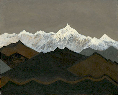 Der Himalaya ist etwa 350 Millionen Jahre alt. Eine solche Zeitangabe können wir nicht denken, nicht ahnen, eher werden wir staunen und schweigen. Mittlere Formate 80x80cm Kleine Formate ca. 20x26cm Holztafeln 18x24cm